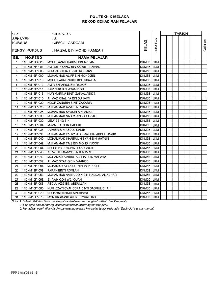 Makluman tatacara pendaftaran kamsis pelajar senior politeknik merlimau melaka sesi 1 :